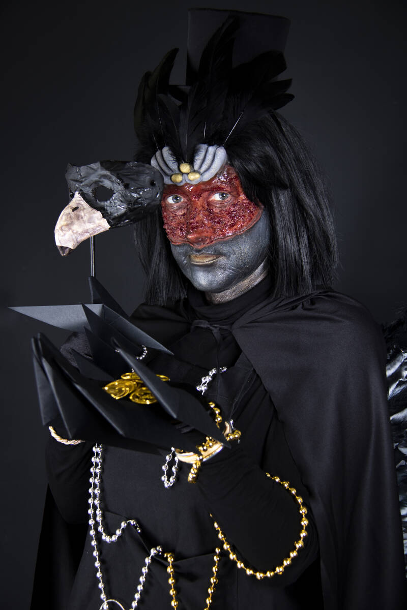 Corvus de la Vorax is een ravin waarvan iedereen denkt dat ze een brave raaf is die nooit steelt. Echter is dit de grootste misvatting over de la Vorax, ze is namelijk een meester in dingen ongezien stelen. Nu ze alles had gestolen wat ze wilde hebben was er nog 1 ding wat niet kon ontbreken in haar collectie; de ‘Adamas diamant’. Deze diamant bevond zich bij de Sultan in Rabanaba en werd goed bewaakt door tientallen bewakers. De diamant stelen zou een grote uitdaging worden, maar de la Vorax liet zich niet afschrikken en ging op boevenjacht. Na een reis van 7 dagen door de moerassen van Kanaba en de Randa woestijn kwam ze aan bij het paleis van de Sultan. Ze wachtte tot de nacht gevallen was en sloop richting de slapende wachters. Toen ze aankwam bij de kluis stond ze opeens oog in oog met de Sultan. Ze schrok zo erg dat ze weg wilde rennen maar ze kwam maar niet vooruit, dit omdat hij een spreuk had uitgesproken dat ze niet meer kon bewegen. De sultan ging voor haar staan en sprak wederom een spreuk uit: ‘gij zult nooit meer stelen, gij zult zoeken naar geluk en uw gezicht’. Corvus viel op de grond en voelde bloed langs haar masker lopen, ze had geen gezicht meer…